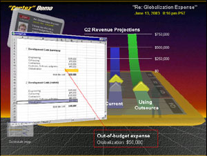Although it looks a bit dated today, this design work is still far ahead of its time even though it was conceived and coded up 14 years ago. The basic premise is that any business presentation is really a conversation that requires the ability to interact with the content to ask what if questions or change the data as needed on the fly to facilitate clearer communication. From a commercial standpoint, it still has not been achieved.